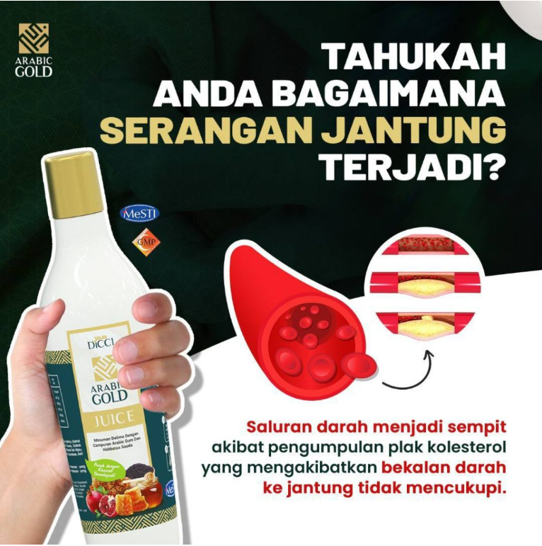 Memperkenalkan Jus Arabic Gold Supplement Tambahan Khusus Untuk Anda Yang Mengalami Masalah Jantung Tersumbat