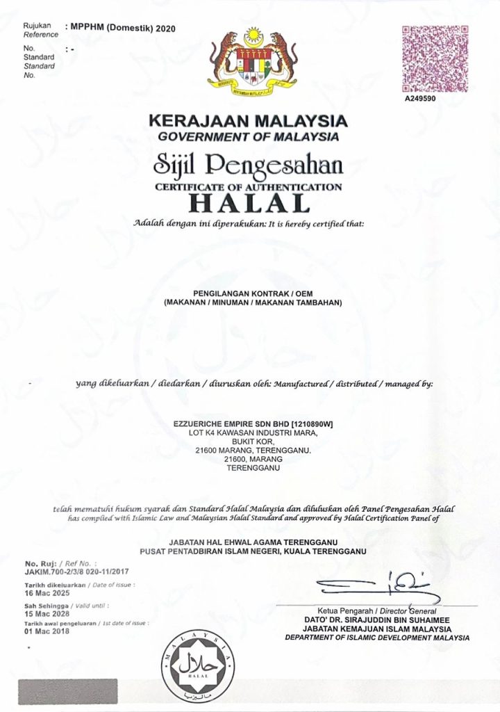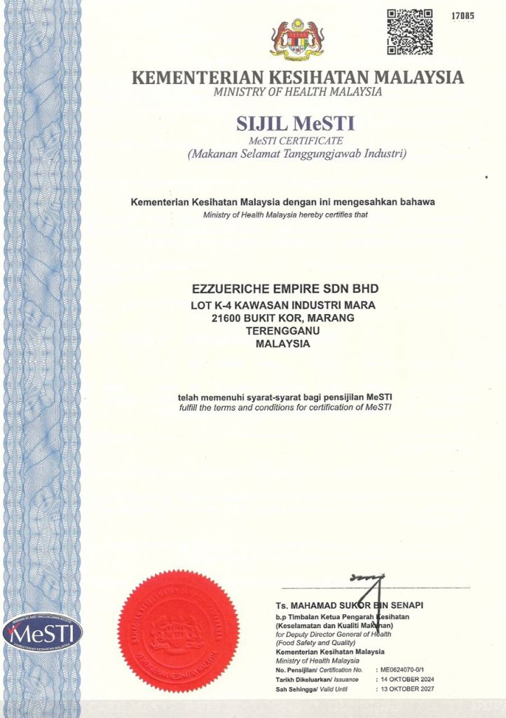 Sijil dibawah merupakan bukti yang Jus Arabic Gold Bukanlah Produk Yang Tidak Selamat DiGuna Pakai